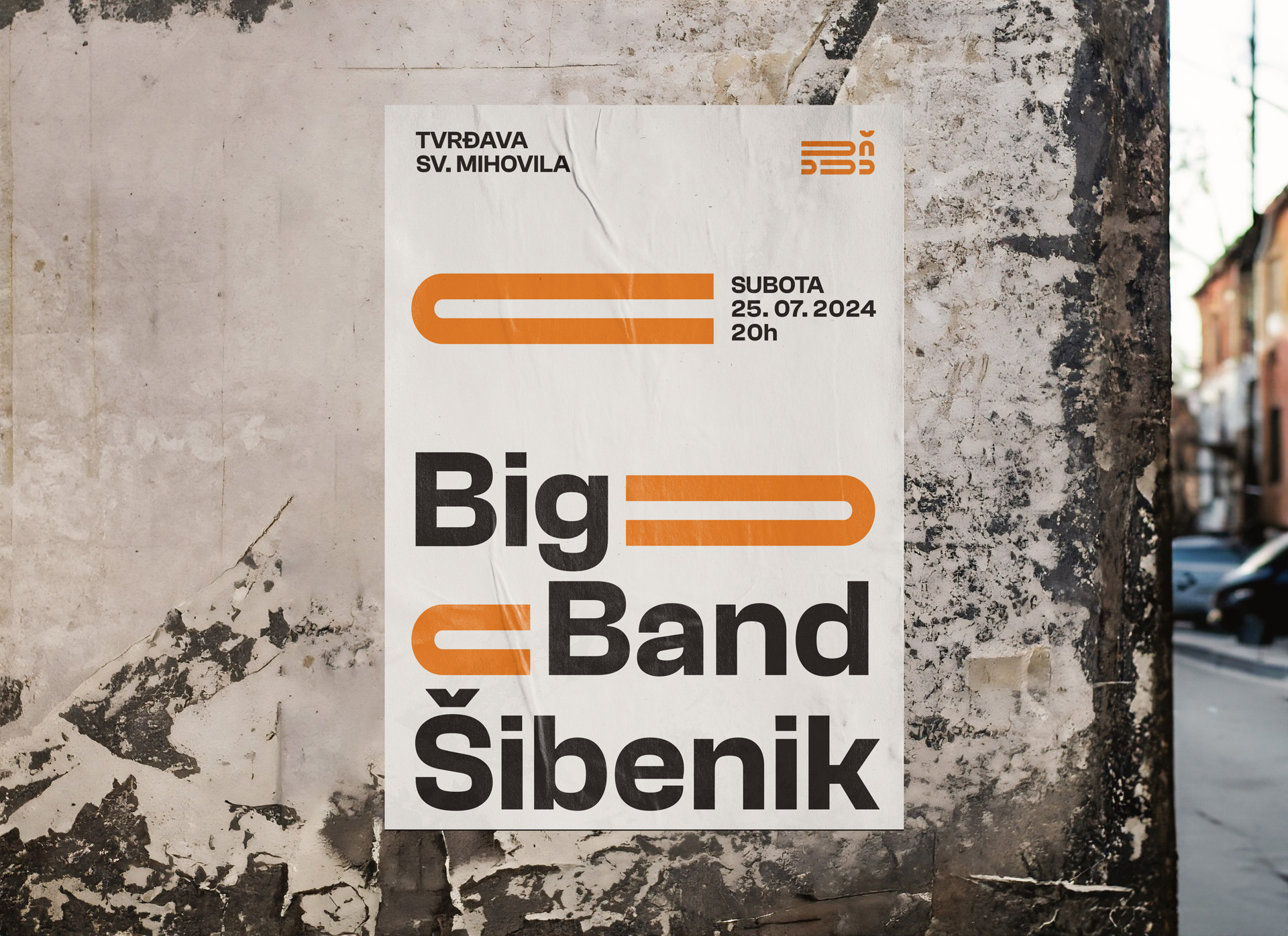 Logotip i vizualni identitet Big Banda Šibenik spaja grafičke elemente koji podsjećaju na puhačke instrumente s bogatom kulturnom baštinom Šibenika.