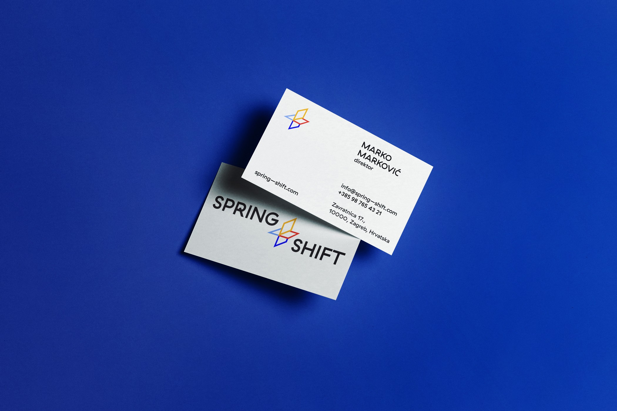 Simbol plus predstavlja povezanost, dok istovremeno simbolizira rast, napredak i inovaciju. Ovaj jednostavan, ali moćan znak odražava dinamičnu prirodu agencije Spring + Shift, koja se fokusira na stvaranje vrijednosti kroz kreativne i strateške pomake. Trodimenzionalna priroda znaka plus naglašava isprepletenost usluga i ideja koje agencija nudi, istovremeno pružajući prostor za modularne vizualne interpretacije različitih vrijednosti, aktivnosti i aspekata koji definiraju njezin rad. Svaki aspekt agencije može se prikazati kroz varijacije u obliku i boji, što logotip čini svestranim i prilagodljivim različitim kontekstima.
