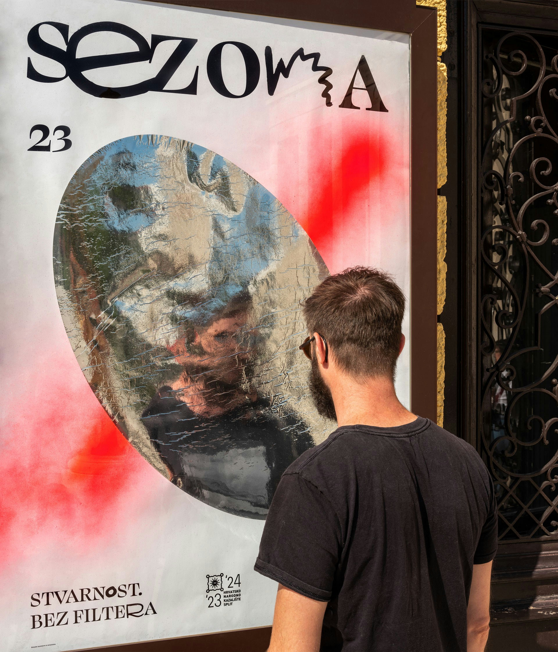 Odrednice identiteta ne primjenjuju se strogo. Okosnicu identiteta čine font obogaćen script slovnim znakovima, logotip sezone te reflektirajuće površine u vizualnim kompozicijama. Reflektirajući elementi, koje smo ručno aplicirali, preuzeti su s plakata sezone te simboliziraju kazalište kao ogledalo grada u kojem djeluje.