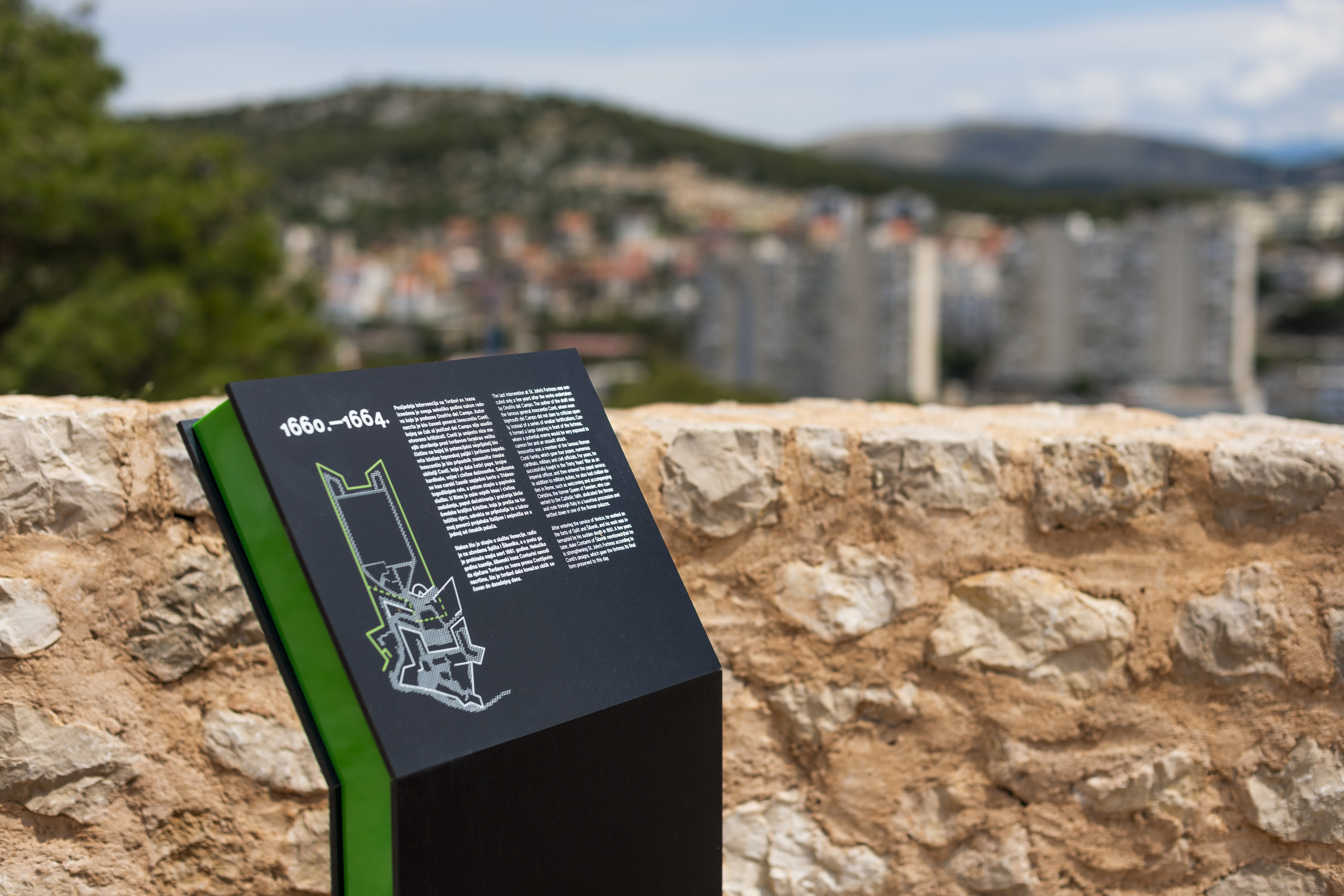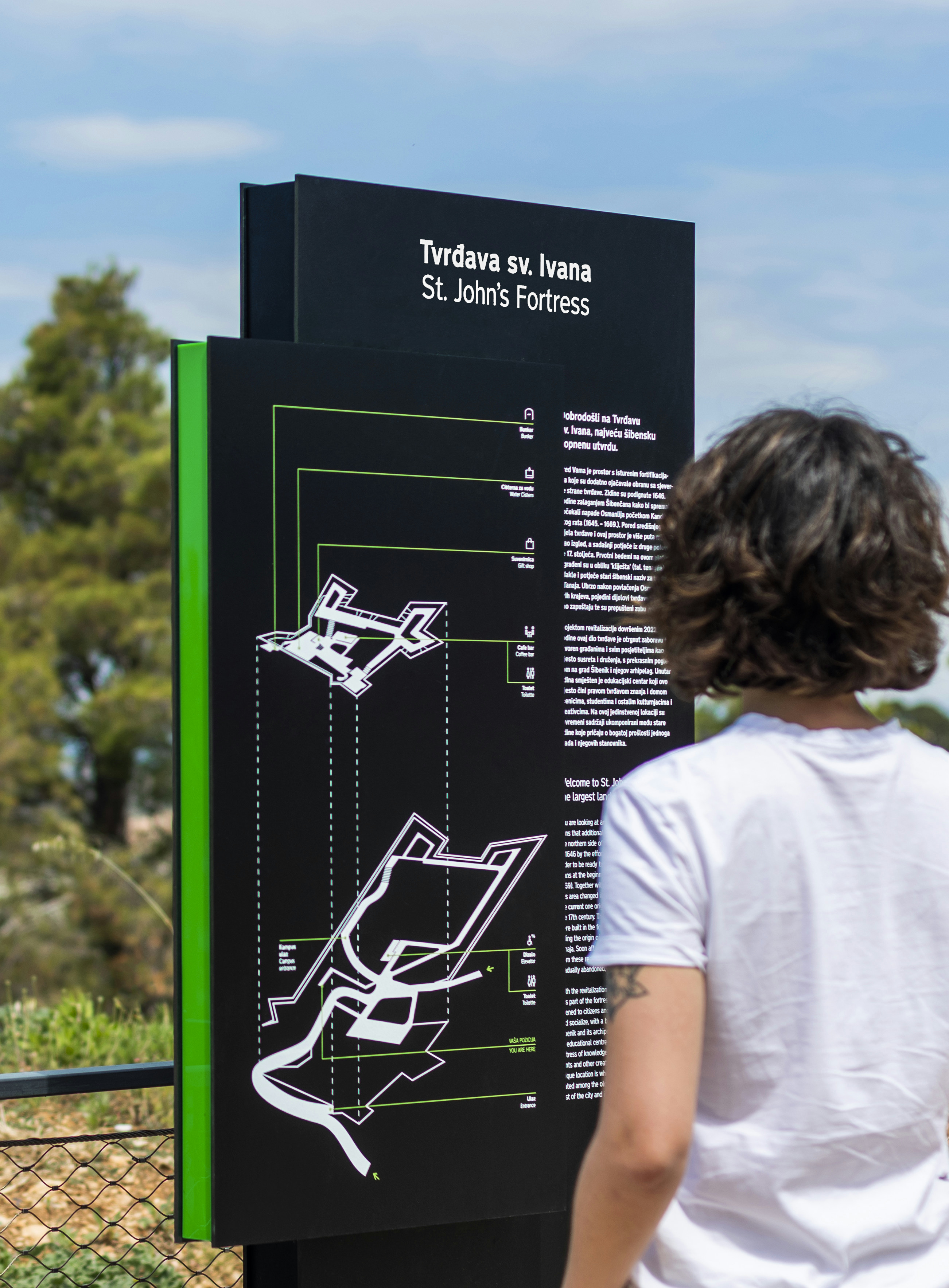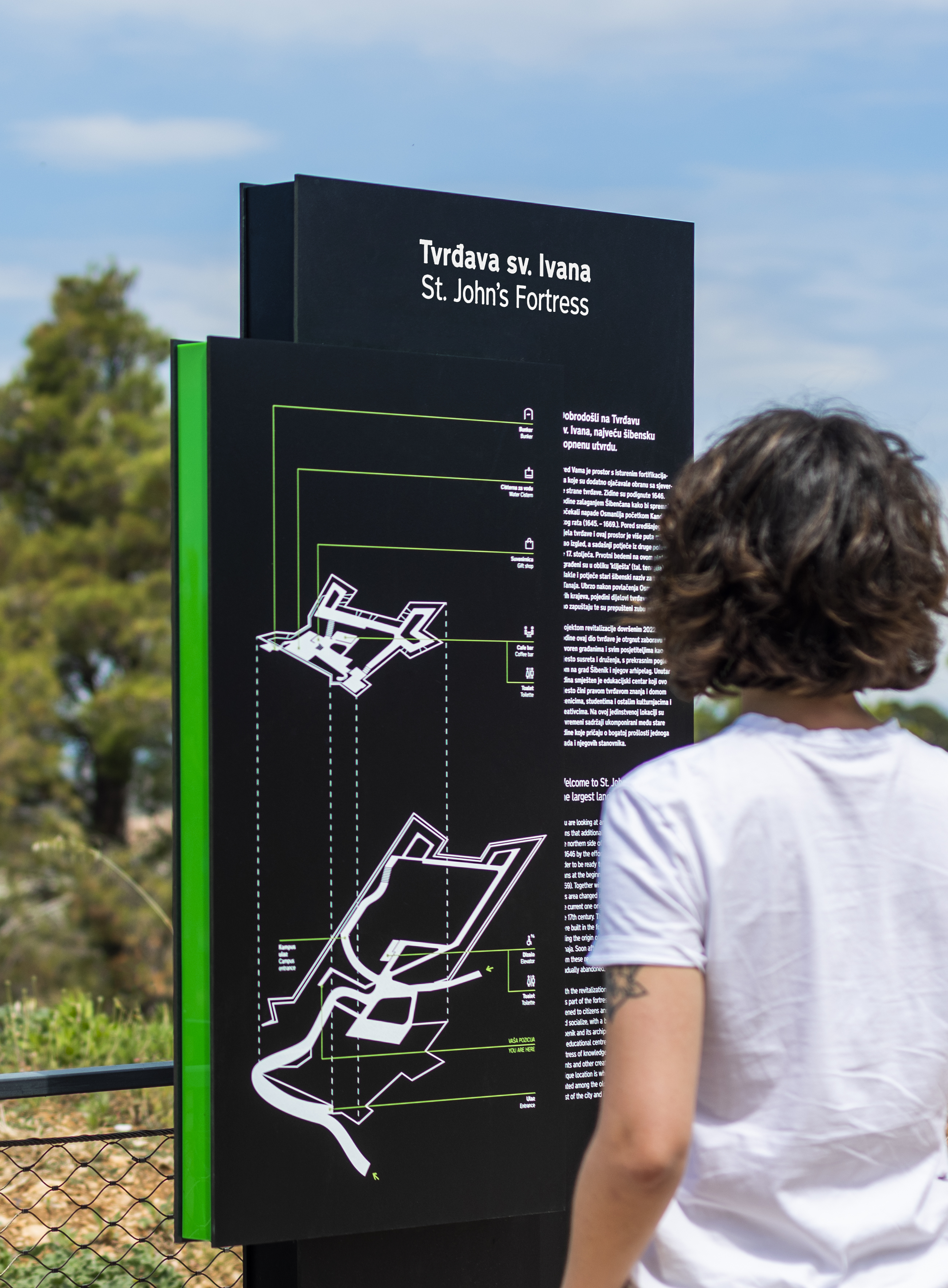 By installing signage at St. John's Fortress in Šibenik, the project for fortification signage in Šibenik, which began in 2017, has been completed. We have unified all three fortresses (St. Michael's Fortress, Barone Fortress, and St. John's Fortress) with a single concept and connected them with the same visual language, making it easier for all visitors to navigate these cultural monuments. The concept of the signage was explained in the presentation for St. Michael's signage, and for this work, we received special recognition from the Vienna Institute for Information Design (IIID Awards - Editors' Choice).