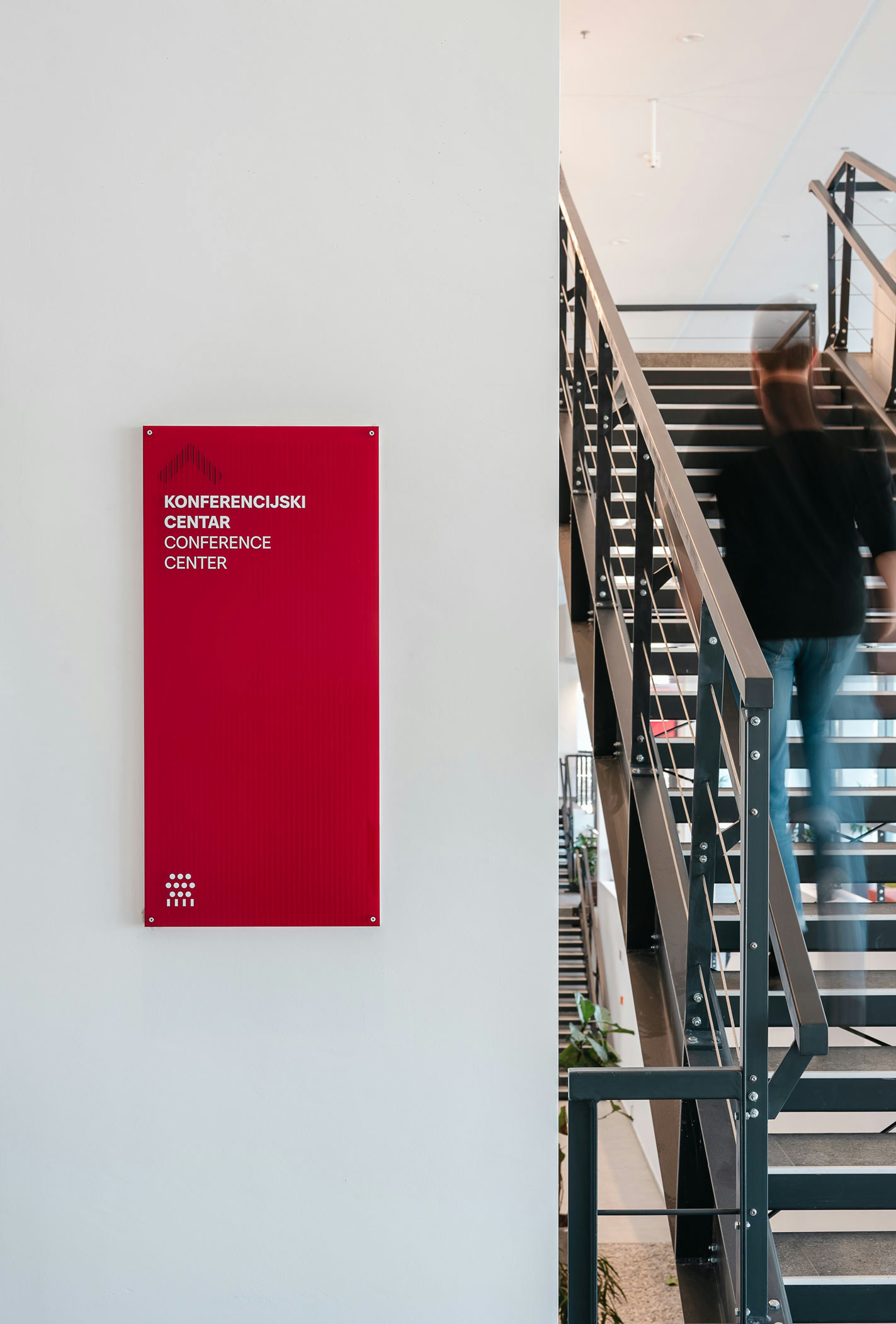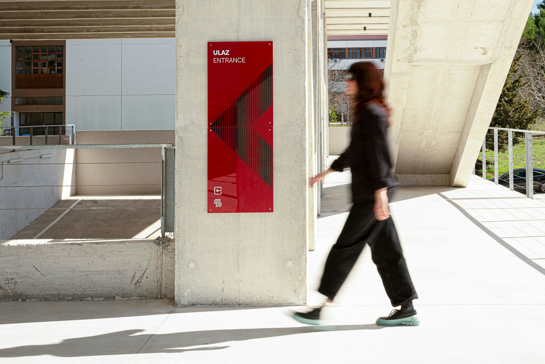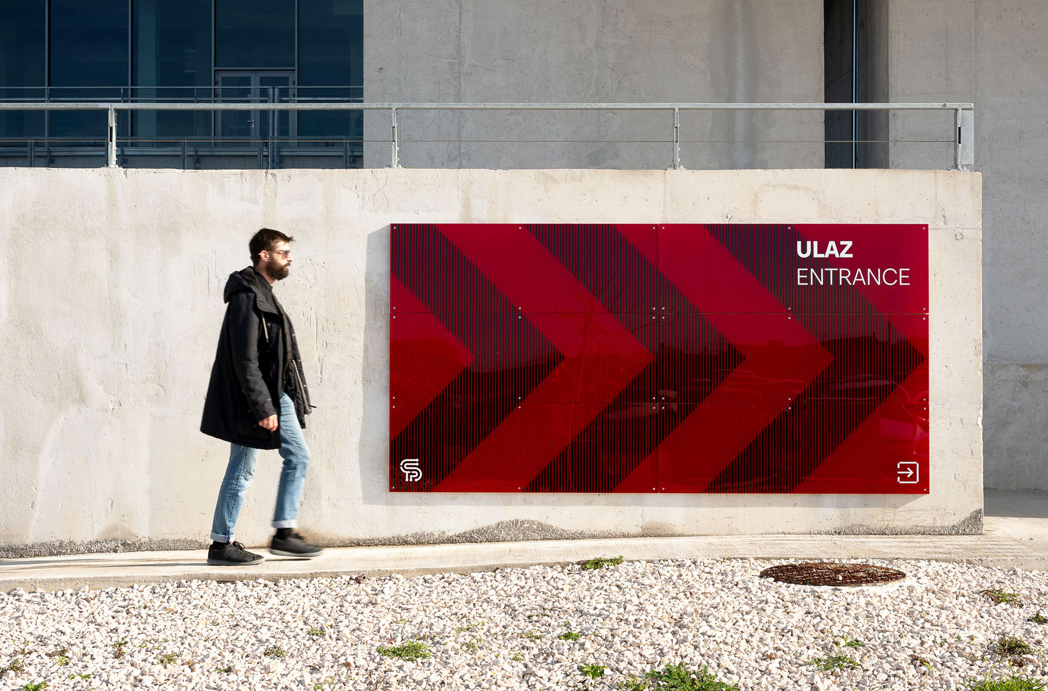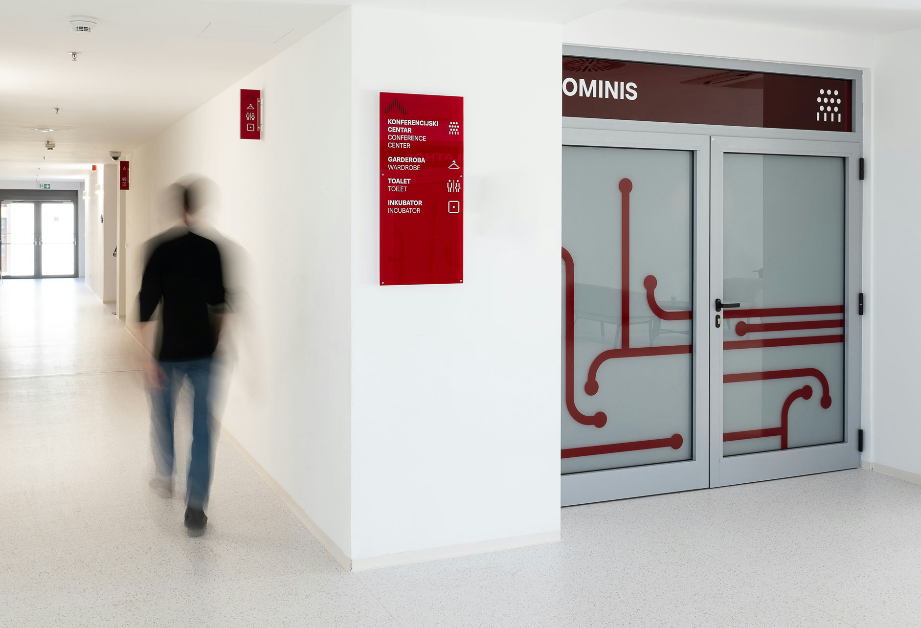The Technology Park Split is located in a renovated building originally designed as part of a military complex and later transformed into a hub for advanced technologies. Due to the architectural configuration of the building, several functions are positioned on mezzanine levels, making orientation within the 4,252 m² facility demanding. The presence of multiple entrances and intersecting circulation routes further complicates navigation, making detailed spatial analysis a key step in the signage design process.